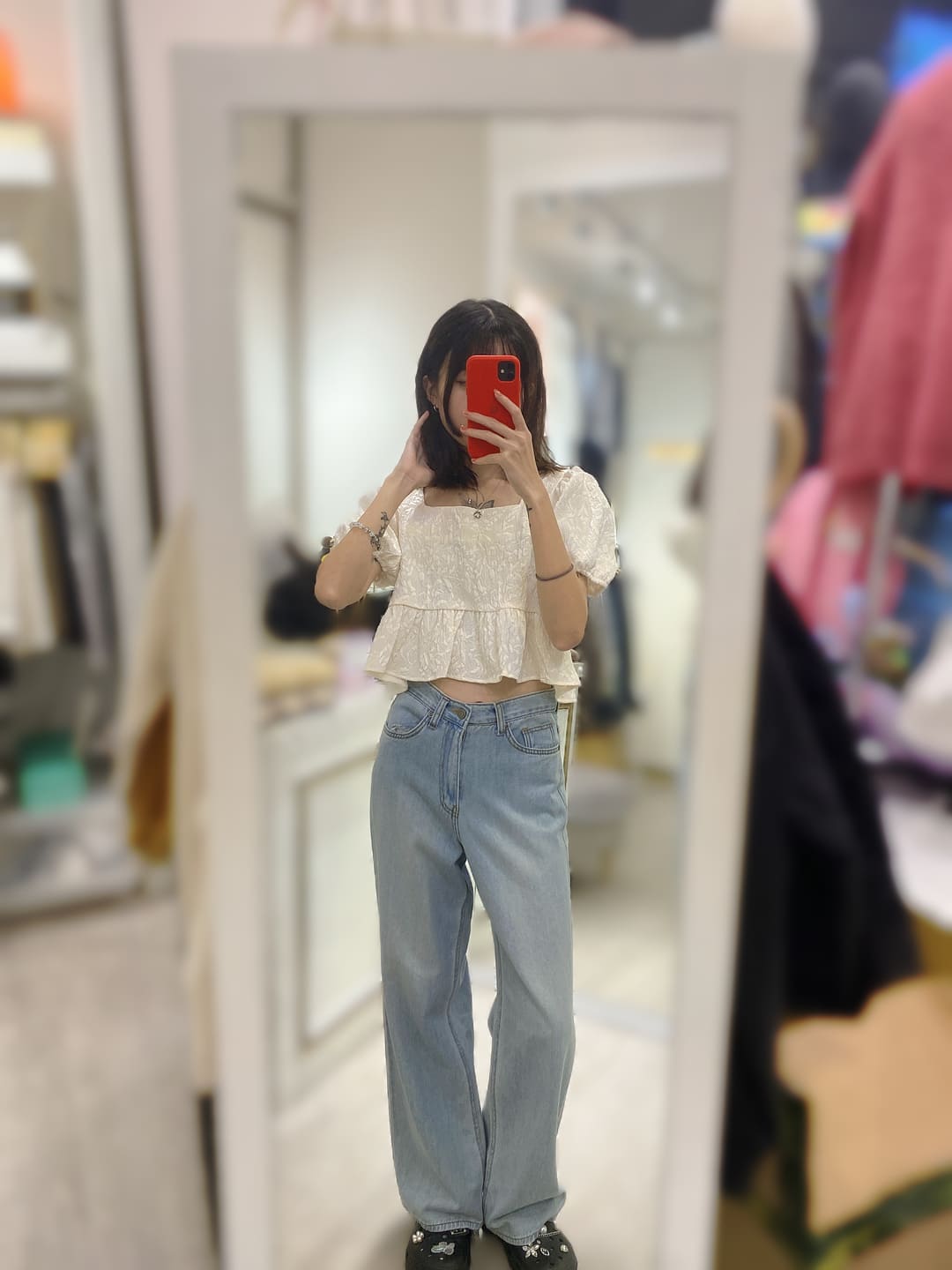 顯瘦與甜美雙享配~泡泡袖短版上衣