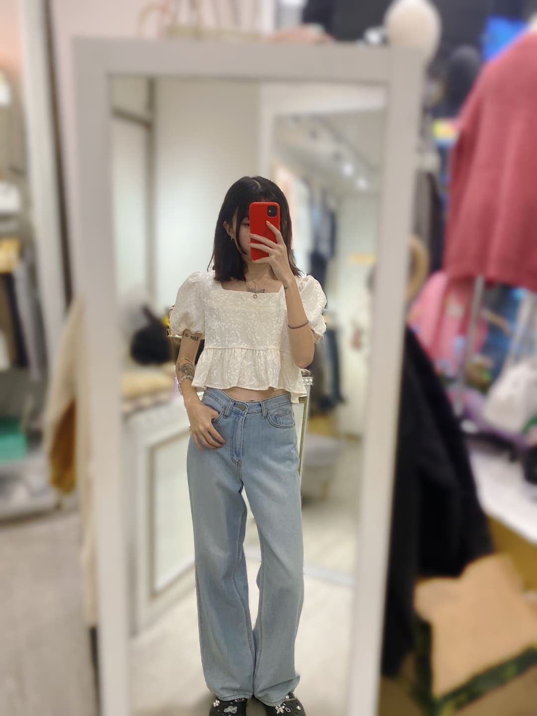 可愛的泡泡袖荷葉邊上衣